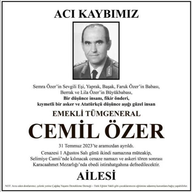 Cemil Özer’e Allah’tan rahmet, ailesi ve sevenlerine sabır ve başsağlığı dileriz.