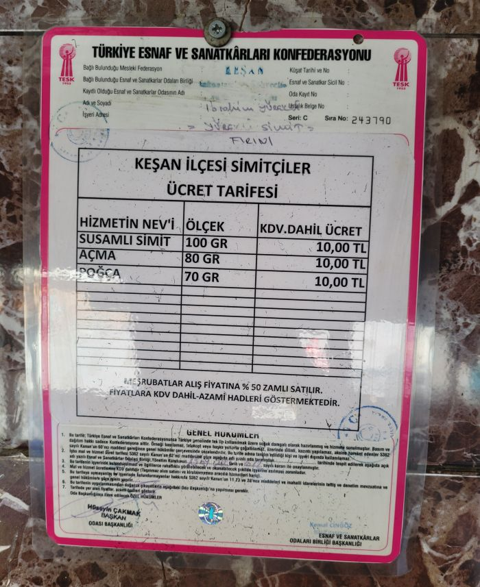 Keşan’ın Yenimescit Mahallesi’nde 1994 yılından bu yana simit fırını işleten İbrahim Yürekli, özellikle çarşı merkezinde farklı fiyatlarda simit satıldığını dile getirerek, “Keşan’da odanın verdiği simit fiyatı hem bizler hem pastaneler için 10 TL’dir. Ama 13 liraya 15 liraya simit satıldığını görüyoruz. 10 liradan yüksek fiyat isteyen olursa, vatandaş çeksin fotoğrafını, zabıtaya şikayet etsin.” dedi.