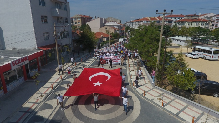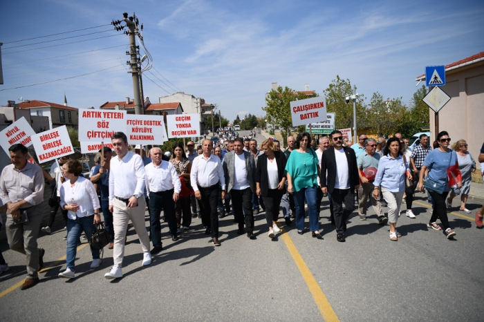 Yeni Mahalle’de traktörlerin toplanma noktasında gelindiğinde İlçe Başkanı Anıl Çakır, Büyük Çiftçi Yürüyüşü’ne gelenleri selamlayarak şunları söyledi: “Selam olsun üretenlere, selam olsun bir parça toprağa can verenlere selam olsun karda kışta yağmurda çamurda sıcağın altında üretmekten vazgeçmeyenlere… Selam olsun bu topraklar için can alan, can verenlere… Selam olsun bu güzel ülkeyi kurtaran, Cumhuriyetimizi kuran ‘Köylü milletin efendisidir’ diye haykıran Mustafa Kemal Atatürk’e bin selam olsun… Bugün burada sesimizi haykırmak için toplandık. Bugün burada partisi, siyasi görüşü, ideolojisi ne olursa olsun yalnızca Türk çiftçisinin derdini haykırmak için bir araya geldik. Bugün burada Keşan, Edirne, Uzunköprü, İpsala, Enez, Malkara bütün köylerin temsilcileri var. Ziraat odalarımız, ilçe başkanlarımız, siyasi parti temsilcileri var. İl Genel Meclisi başkanımız ve üyelerimiz, belediye meclis üyelerimiz var.”
