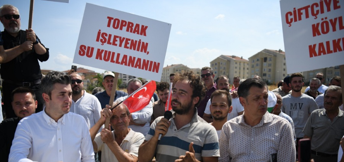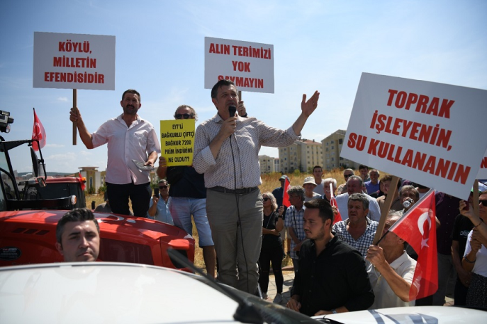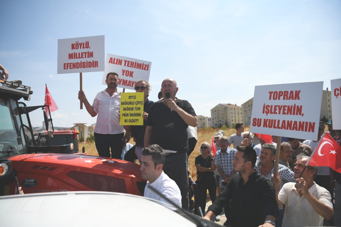 Çiftçinin zor durumda olduğunu hatırlatan CHP İlçe Başkanı Çakır, konuşmasına şöyle devam etti: “Çiftçimiz zor durumda çiftçimiz hakkını alamıyor. Yıllardır her sene emek veriyor, çabalıyor ama yine hakkını alamıyor. Bakın pazartesi günü okullar başlayacak çocuklar babasının eline bakıyor. Çocuklar okula gidecek, çantayı nasıl alacak anne babası? Ayakkabısını nasıl alacak? Defter, kitap nasıl alacak? Çocuklar üniversiteye gidecekler kalacak yurtları yok. Çiftçinin evladına ev kiralayacak parası yok. Tek umudu mahsulüydü. Önce buğdayda hayal kırıklığına uğradı. Ardından ayçiçeğinde hayal kırıklığına uğradı ama kendisine sahip çıkan arkasında duran kimseyi bulamadı. Kuraklık yaşıyoruz. Ama onun karşılığında çiftçimiz destek alamıyor. Bakın kendi çiftçisine vermedikleri parayı Rus çiftçisine, Ukrayna çiftçisine verecekler. Biz çok bir şey istemiyoruz. Onlara ne veriyorsanız, Türk çiftçisine de aynı desteği verin. Başka bir şey istemiyoruz.”