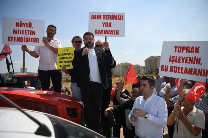 Yazgan, hükümetin sırtını çiftçiye döndüğünü belirterek, “Herkes suçlunun orada olduğunu biliyor. Ancak gözler kapalı diller tutulmuş. Biz; bize Rus çiftçisi kadar, Ukrayna çiftçisi kadar değer verilsin diyoruz. Çiftçi ticaret erbabı değil üreticidir. Çiftçi; ailemizdir. Ailemize sahip çık diyoruz. Artık Tarım Yasası’nın 21. Maddesi’ni uygula. Gayri Safi Milli Hasıla’nın yüzde 1’ini çiftçiye vermeye başla artık.” diye konuştu.