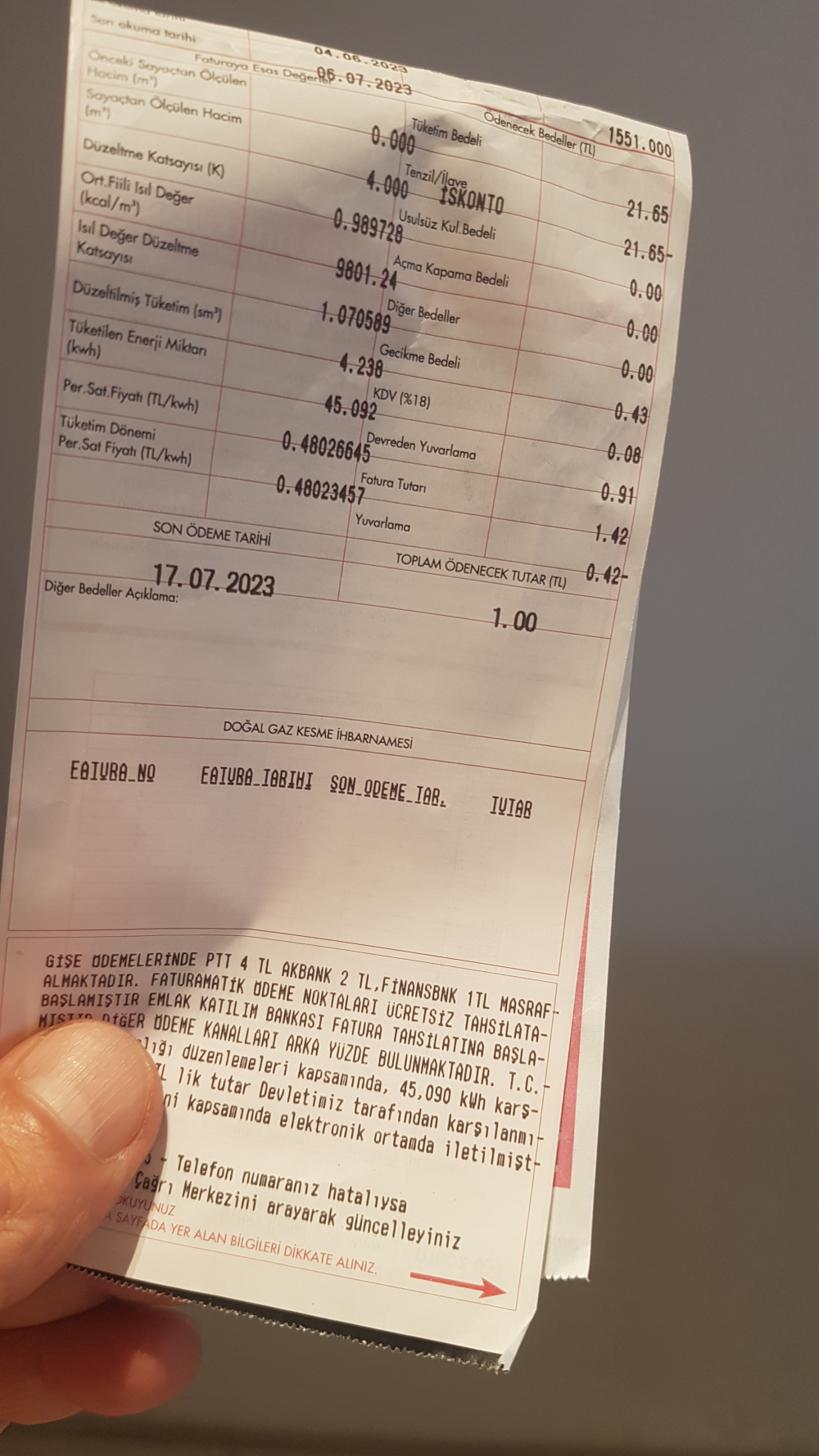 Temmuz ayında ödenmesi gereken 2023 Haziran ayı faturaları, kış mevsiminin geçmesi nedeniyle, özellikle konutlarda çok düşük veya bedelsiz olarak tahakkuk etti.