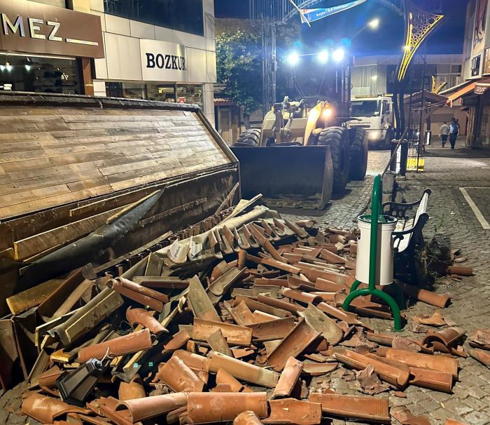 “Kunduracılar Çarşısı’ndaki bir pergolanın (gölgelik) dayanıklılığını yitirmesi sonucu, kendiliğinden yıkılmasının ardından çarşıdaki sağlam olmayan ve risk oluşturan pergolaların sökümünü gerçekleştirdik.