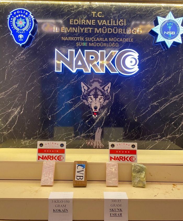 Edirne Emniyet Müdürlüğü Kaçakçılık ve Organize Suçlarla Mücadele (KOM) Şube Müdürlüğü, Narkotik Suçlarla Mücadele Şube Müdürlüğü ve İstihbarat Şube Müdürlüğü ekiplerinin koordineli çalışması sonucu, Edirne’den