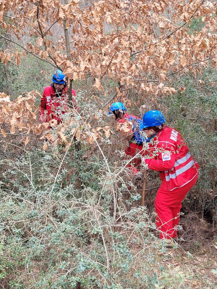 Senaryo gereği ormanlık alanda kaybolan 2 kişi için çalışma başlatan ekip, 3,5 saatlik çalışma sonucunda kayıp kişilere ulaştı.