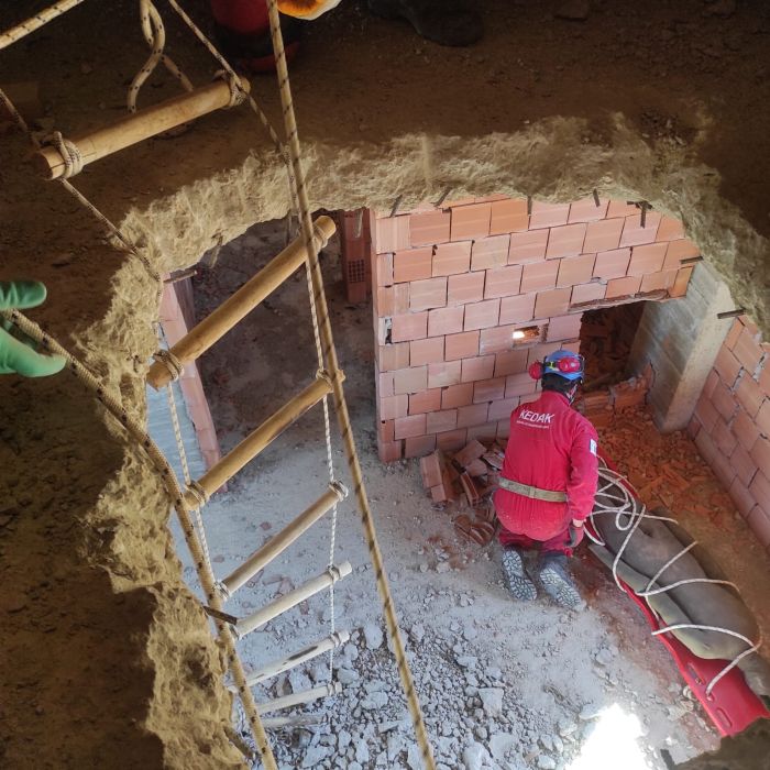 KEDAK bünyesindeki 17 gönüllü arama kurtarma personeli, senaryo gereği çatıdan oluşturdukları bir dehliz aracılığıyla enkaza iniş yaptı. Enkaz altında ulaşılan kazazede, yine çatıdan tahliye edilerek güvenli alana çıkarıldı.