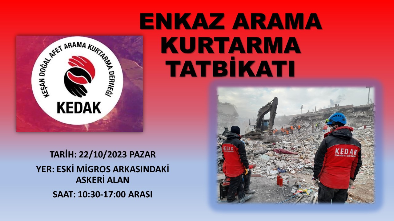 Faaliyetlerine başladığı ilk günden itibaren en temel hedefini, “Keşan halkını temel afet bilinci konusunda bilgilendirmek ve ülkemiz genelinde oluşan doğal afetlere müdahale etmek amacıyla hazır bulunmak” şeklinde belirleyen Keşan Doğal Afet Arama Kurtarma Derneği (KEDAK), zaman zaman yerel ve bölgesel, zaman zaman da ulusal ölçekte organize edilen doğal afet - deprem tatbikatlarına katılıyor.