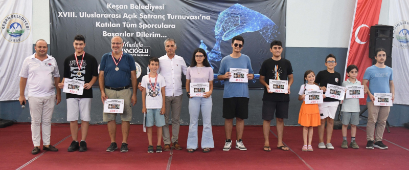 Keşan Belediyesi, Türkiye Satranç Federasyonu, Gençlik ve Spor İl Müdürlüğü işbirliğinde düzenlenen 18. Uluslararası Açık Satranç Turnuvası, 6 Ağustos 2023 Pazar günü sona erdi.