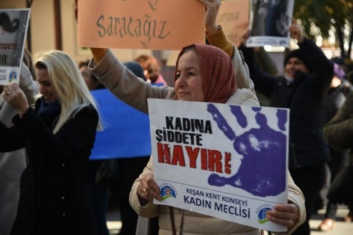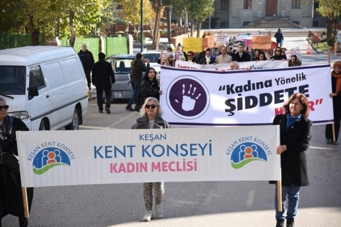 Keşan’da, “25 Kasım Kadına Yönelik Şiddete Karşı Uluslararası Mücadele Günü”nde, Keşanlı kadınlar ve erkekler ellerinde taşıdıkları döviz ve pankartlar ile şarkılar eşliğinde, şiddete hayır sloganları atarak birlikte yürüdü. Keşan Kent Konseyi Kadın Meclisi öncülüğünde gerçekleştirilen yürüyüş, saat 12.30 sıralarında Kent Müzesi önünde oluşan kortejin Cumhuriyet Meydanı’na hareketiyle başladı.