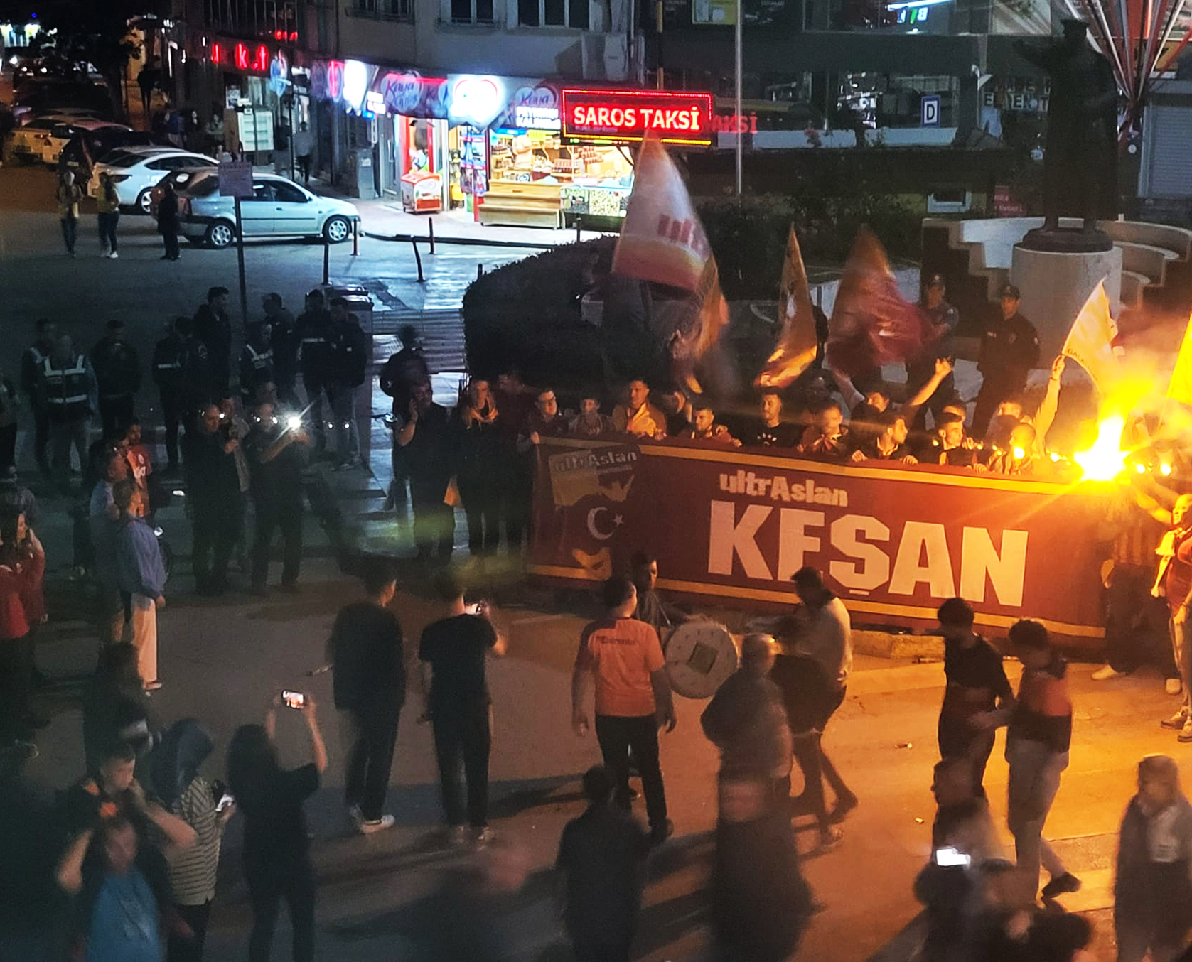 Keşan’daki Galatasaray taraftarları, maçın ardından, Galatasaray Taraftarlar Derneği’nin de bulunduğu Tekel Meydanı’nda şampiyonluk kutlaması yaptılar.