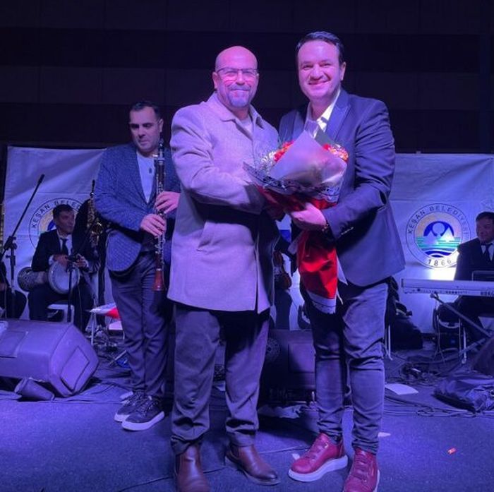 Konuşmanın ardından Başkan Özcan tarafından Gökhan Uyan’a çiçek verildi. Cüneyt Şentürk’e de, konserinin ardından, Keşan Belediye Başkan Yardımcısı Mehmet Meriç tarafından çiçek verildi.