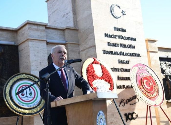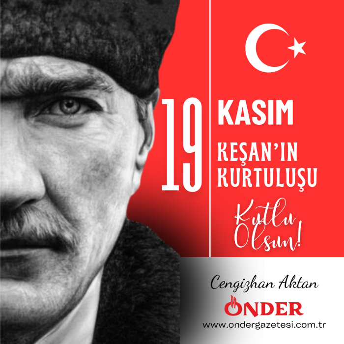 Törende konuşan Belediye Başkanı Özcan, Keşan’ın kurtuluşunun 102’nci yılını kutlayarak; Osmanlı İmparatorluğu’nun emperyalist ülkeler tarafından parça parça edilmesi nedeniyle çaresizlik içerisinde olan ulusumuzda 19 Mayıs 1919 sabahı Samsun’da bir umut doğduğunu belirterek, “Umudun adı Mustafa Kemal Atatürk’tür. Amasya, Erzurum ve Sivas kongrelerinden sonra milli mücadeleyi ciddi şekilde organize eder ve başlatır. Akabinde Kurtuluş Savaşı’nı gerçekleştirir ve Yunanlılar 9 Eylül’de denize dökülür. Bu arada yapılan Lozan Anlaşması’yla İstanbul’un batısından Meriç’e kadar olan topraklardaki Yunan işgali anlaşmayla geri püskürtülür. Tam 102 yıl önce Kurtuluş Caddesi ismini verdiğimiz bu caddeden Yüzbaşı Mehmet Bey ve ekibi askerleriyle gelir, Yunan bayrağı indirilir ve sonsuza dek kalacak olan Türkiye Cumhuriyetinin bayrağı dikilir.” dedi.