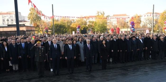 Atatürk anıtına çelenklerin sunulduğu törende saygı duruşunda bulunulup, İstiklal Marşı okundu.