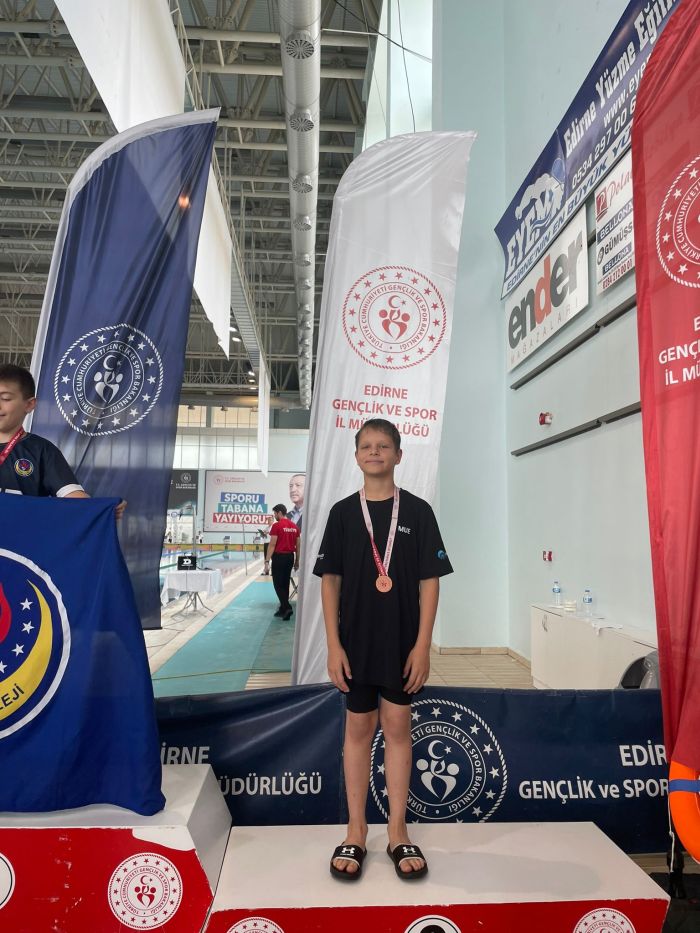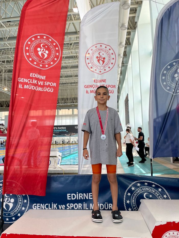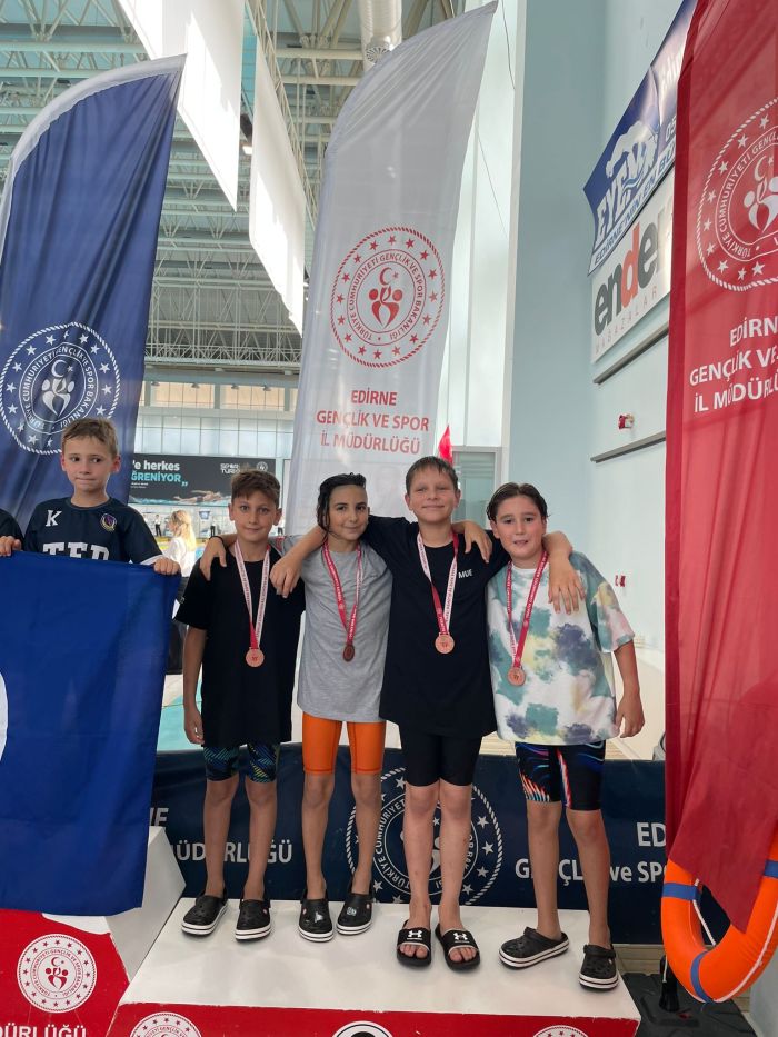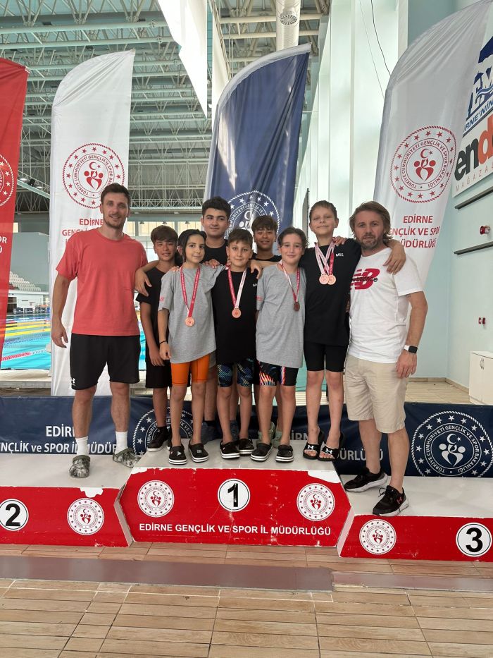 Edirne’de olimpik yüzme havuzunda gerçekleştirilen yarışmalarda, Beden Eğitimi Öğretmeni Eray Erel’in antrenörlüğünde yarışmaya katılarak kürsü başarısı gösteren sporcular ve dereceleri şöyle: