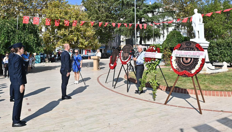 Tekirdağ Tarihi Valilik binası önünde yapılan törende saygı duruşunda bulunulması ve İstiklal Marşı’nın söylenmesinin ardından Tekirdağ Büyükşehir Belediyesi Zabıta Dairesi Başkanı Ulaş Gürkan tarafından Atatürk Anıtı’na çelenk sunuldu. Törende açılış konuşmasını yapan Büyükşehir Belediyesi Zabıta Dairesi Başkanı Ulaş Gürkan, Zabıta Teşkilatının toplum içerisinde gerçekleştirdiği görevlerin önemine değindi. Süleymanpaşa Belediye Başkanı Hüseyin Uzunlar da bir konuşma yaparak, Zabıta Haftasını kutladı.