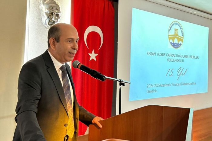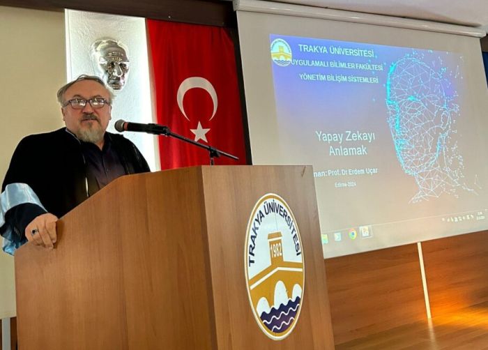 Trakya Üniversitesi Uygulamalı Bilimler Fakültesi Öğretim Üyesi Prof. Dr. Erdem Uçar, 2024-2025 Akademik Yılının “Yapay Zekâyı Anlamak” konulu ilk dersini sundu. Tören, toplu fotoğraf çekimi ile sona erdi.