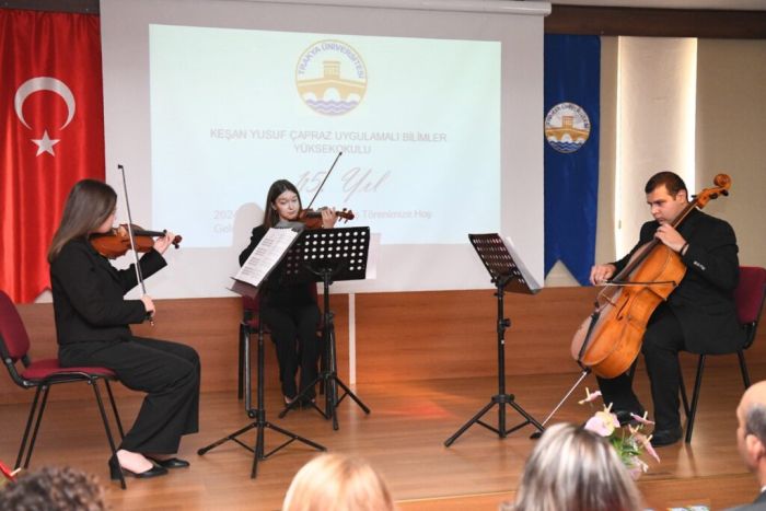 Saygı duruşu ve İstiklal Marşı ile başlayan tören, KYÇUBYO’nun tanıtım sunumu ve ardından Trakya Üniversitesi Devlet Konservatuvarı lisans öğrencilerinden oluşan Yaylı Trio grubunun klasik müzik dinletisi ile devam etti.