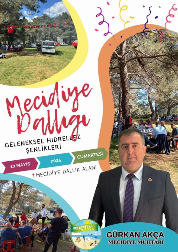 Mecidiye Köyü Muhtarı Gürkan Akça, her yıl baharın gelişiyle birlikte ve yoğun bir katılımla gerçekleştirilen “Mecidiye Dallık ve Hıdrellez Şenlikleri”ne tüm bölge halkını davet etti.