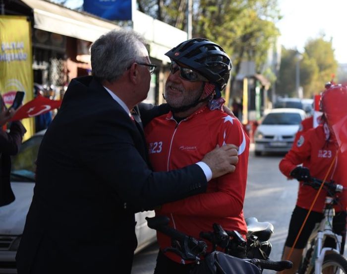 Helvacıoğlu, “Coşkuyla kutlayacağımız yarınki Cumhuriyeti Bayramımızda ay yıldızlı bayrağımızı gururla göndere çekeceğiz. Bizlere bu güzel armağanı yüzlerce kilometre pedal çevirerek ulaştıran SARDOS ailemize teşekkür ederiz.” derken, Eker de, verdiği destekten ötürü Keşan Belediyesi’ne teşekkür etti.
