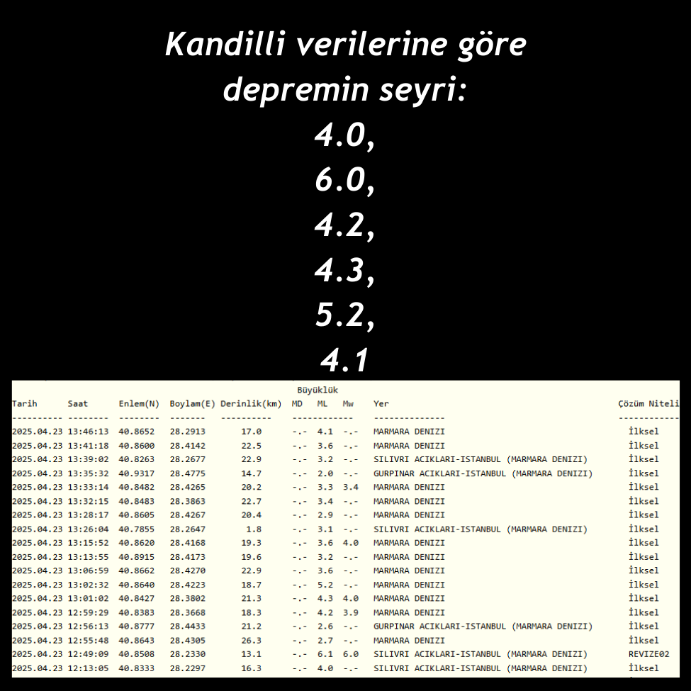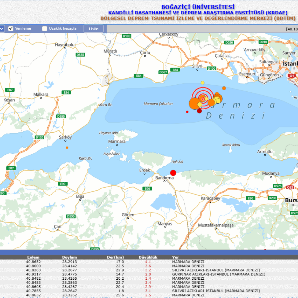 Bugün saat 12.13'te, Marmara Denizi Silivri açıklarında 4.0 büyüklüğünde başlayan deprem, Kandilli Rasathanesi verilerine göre 6.0, bazı kaynaklara göre 6.2 büyüklüğünde devam ederek, büyük paniğe yolaçtı.