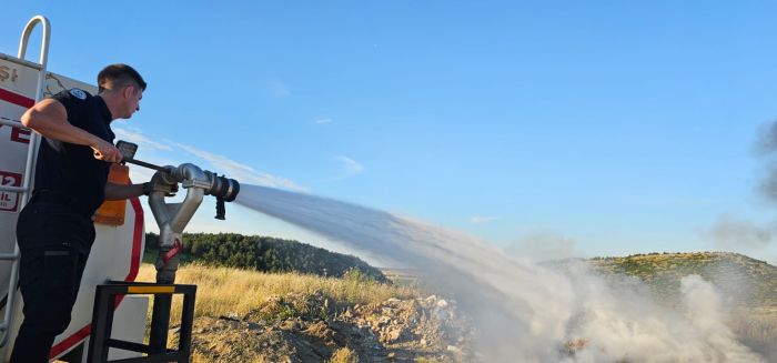 Telleri için yakılan lastikler, Keşan İtfaiyesi tarafından söndürüldü