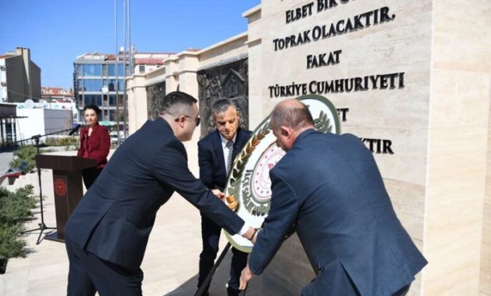 Törende, çelenklerin sunulmasının ardından saygı duruşunda bulunuldu ve İstiklal Marşı okundu. Daha sonra günü anlam ve önemini belirten konuşmalar yapıldı.