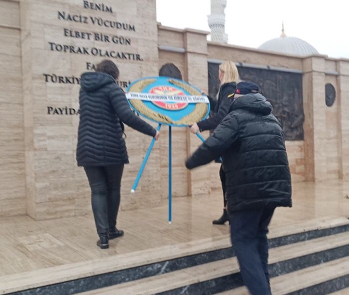 Eyyup Kavazlar tarafından Atatürk Anıtı’na çelen sunulmasının ardından saygı duruşunda bulunuldu ve İstiklal Marşı söylendi.