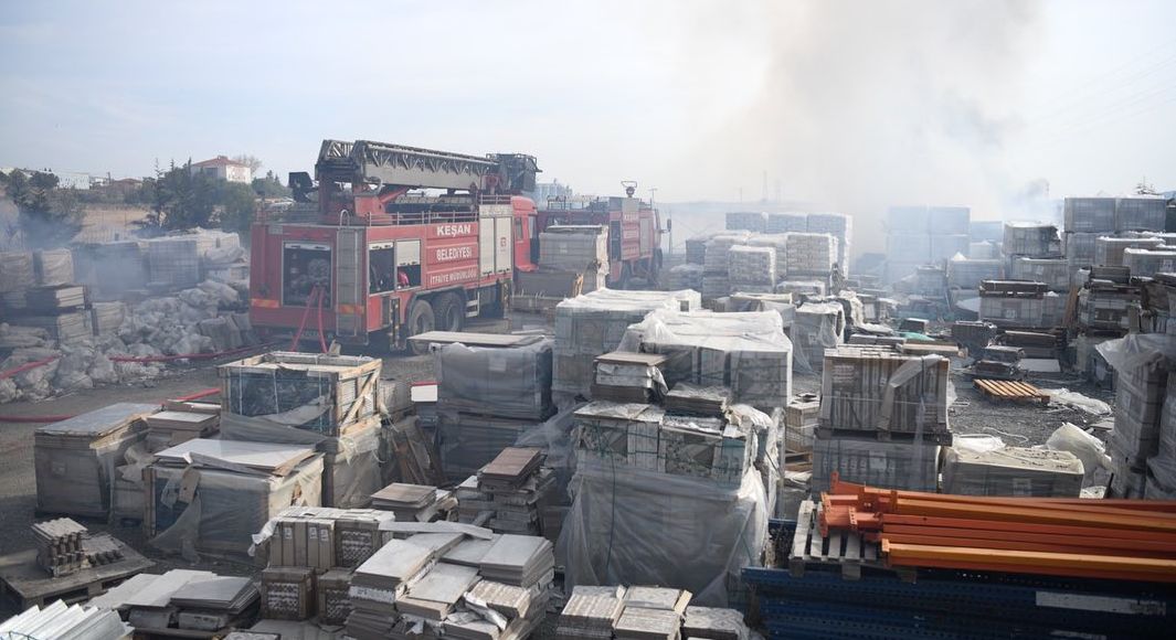 Keşan’da bir yapı markete ait depoda çıkan yangın, çevreye yayılmadan söndürüldü.